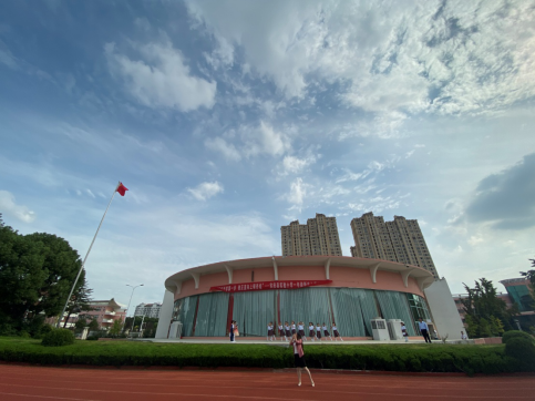新生入学仪式正式开始了,奏唱国歌,向祖国70周年致敬后,陈校长致辞,从校园中可见的银杏树谈起,进而提出对一年级同学的殷切希望。