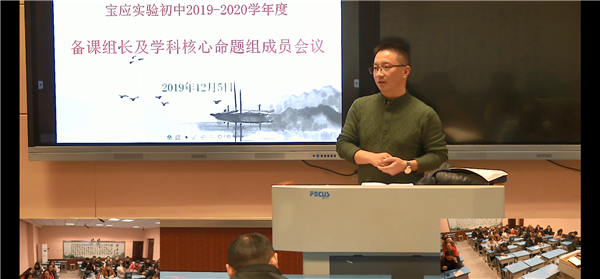 2019年12月5日晚,宝应实中召开学校备课组长及学科核心命题组成员会议。教务处汪国银主任主持会议。