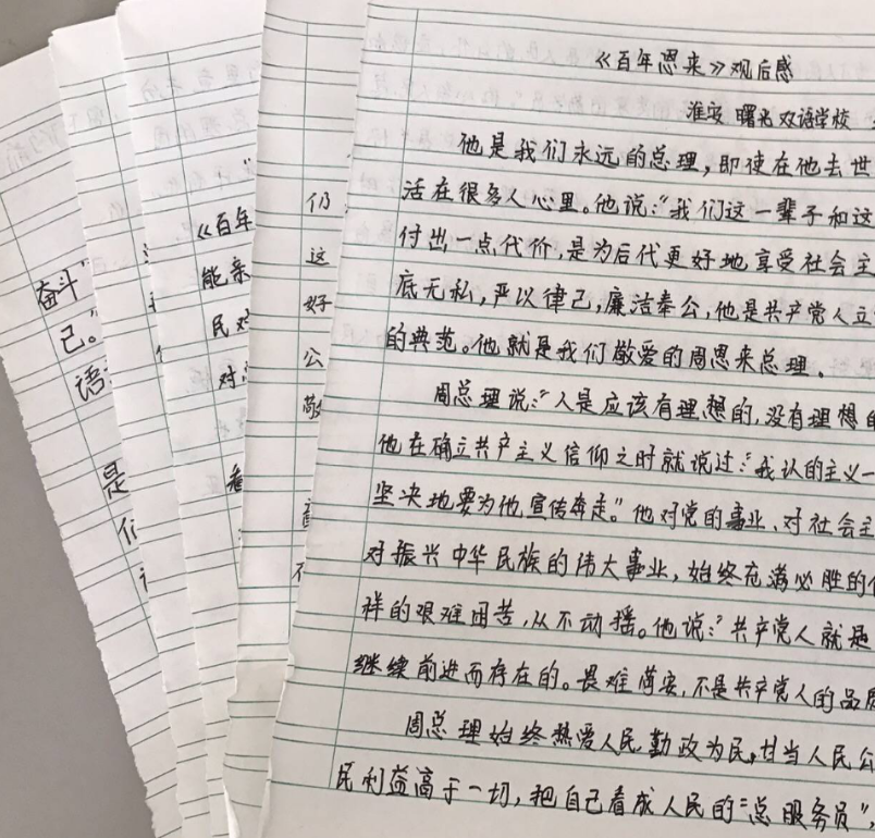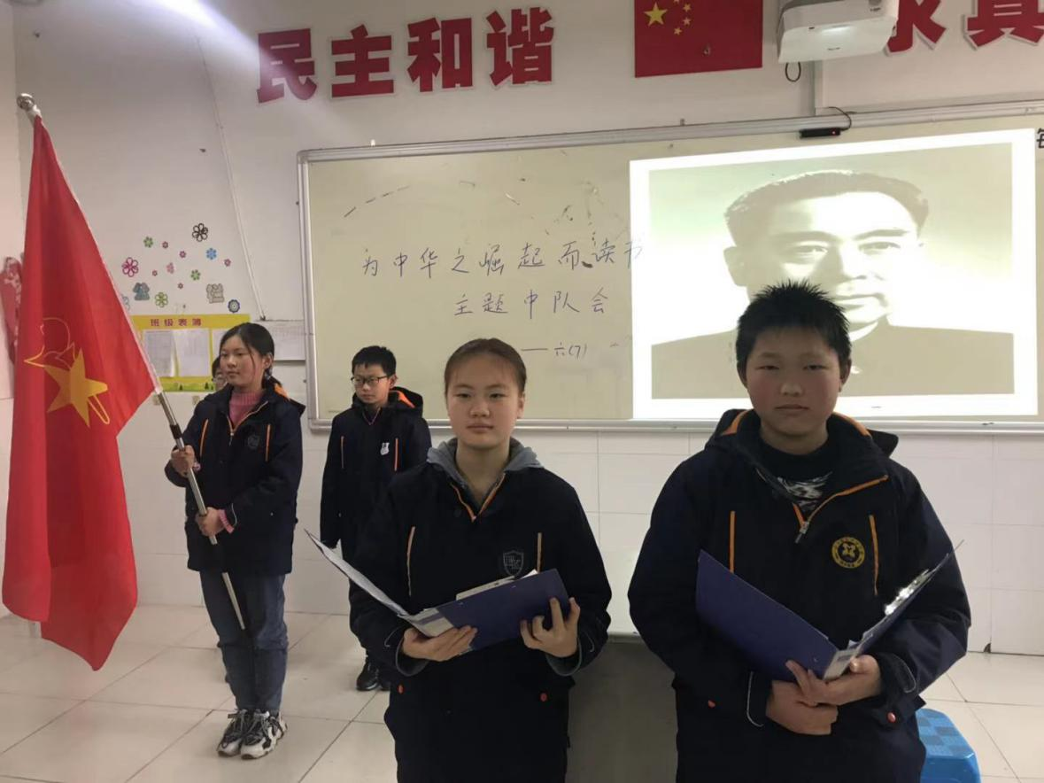 恩来班在建班之初,许老师就组织同学们一起学习《以周恩来为人生楷模——教育读本》,从周总理的十大精神中提炼出班训——“团结友爱、自立自强、勇于进取,敢于创新”。许老师鼓励同学们要像总理一样树立“为中华之崛起而读书”的远大理想,同时寄语同学们“弃燕雀之小志,慕鸿鹄以高翔”,这也成为了同学们青春的理想。经过与班委会的不断讨论研究,许老师带领同学们探索出多种途径,弘扬楷模精神。阶段性组织召开“传承楷模精神”主题班会,定期召开阅读周总理相关书籍和影视等活动,并写出读后感和观后感。同学们将楷模风范铭记于心间,整个集体奋发向上。