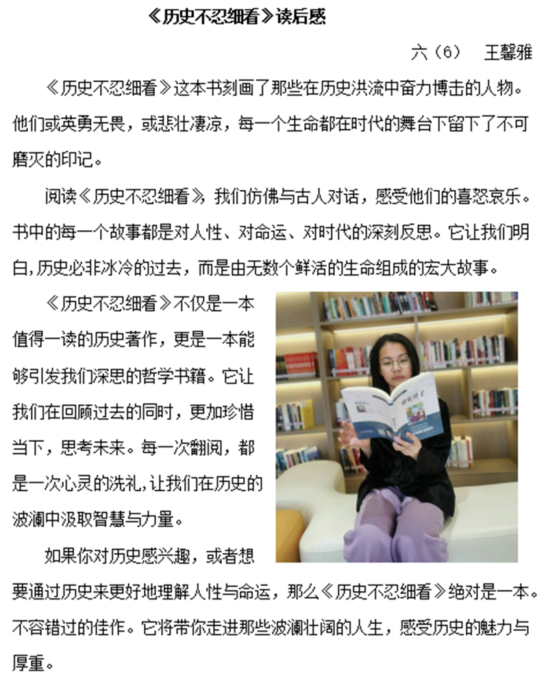 六年级的孩子们在寒假期间认真阅读了各类优秀书籍,不仅丰富了知识储备,更在心灵深处种下了梦想的种子。在读后感撰写过程中,孩子们将阅读过程中的所思所感化为笔下动人的文字,用细腻的文字描绘了自己内心的触动和感悟。