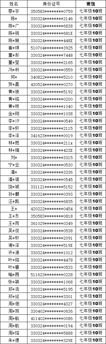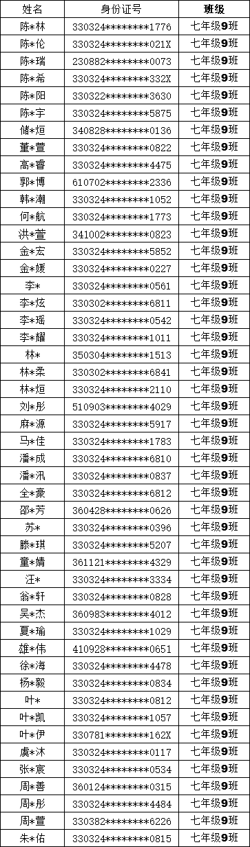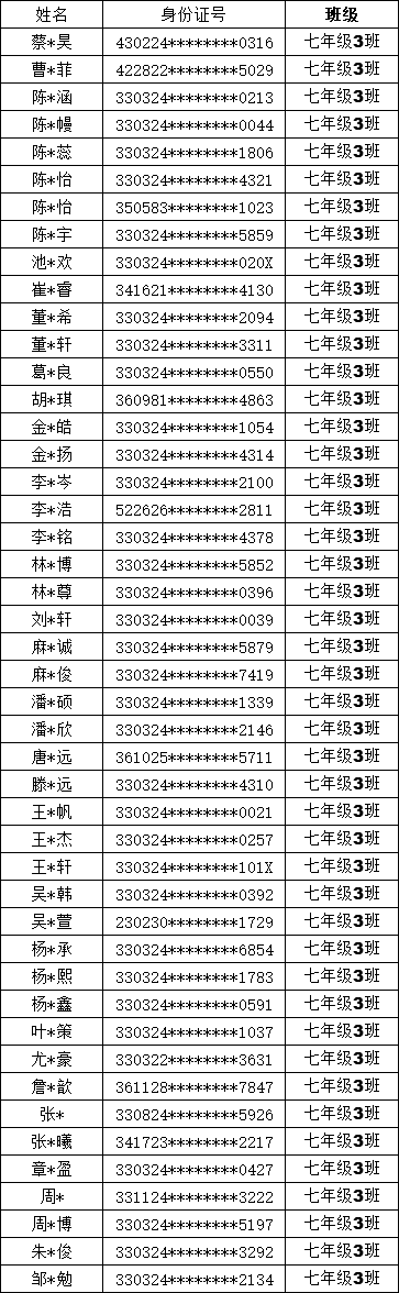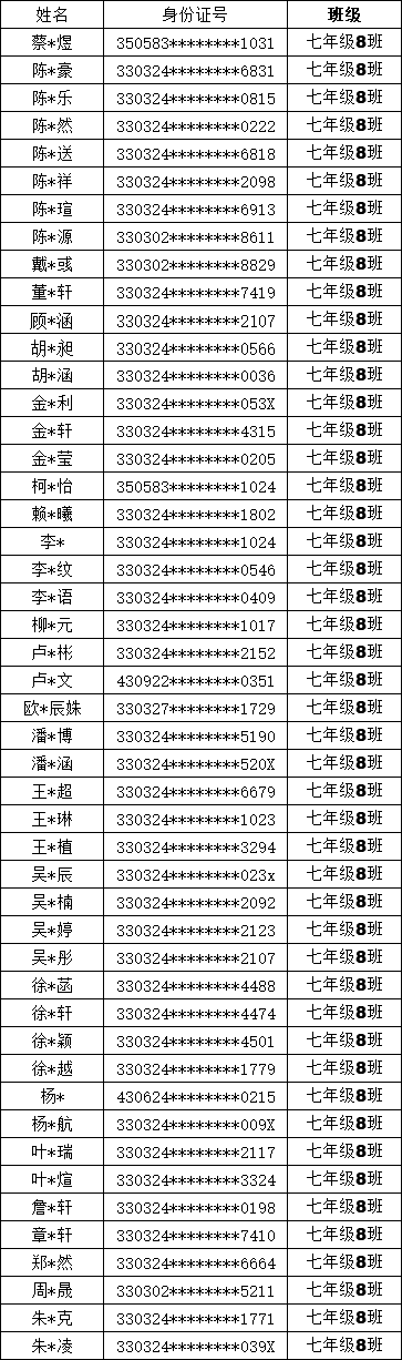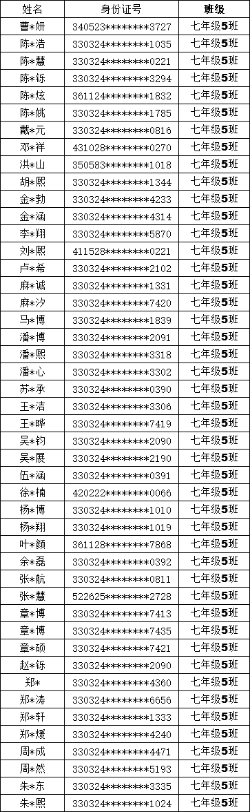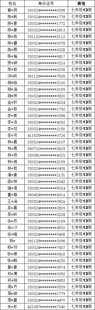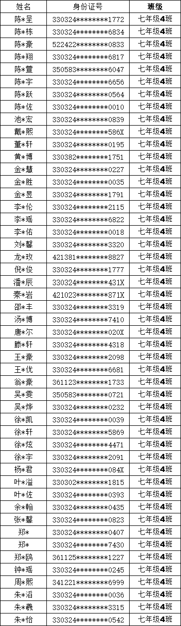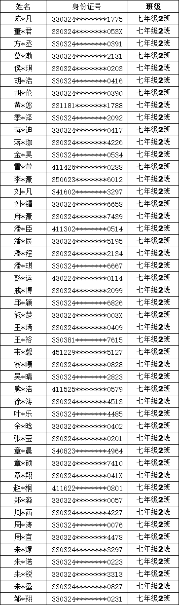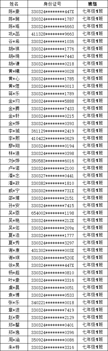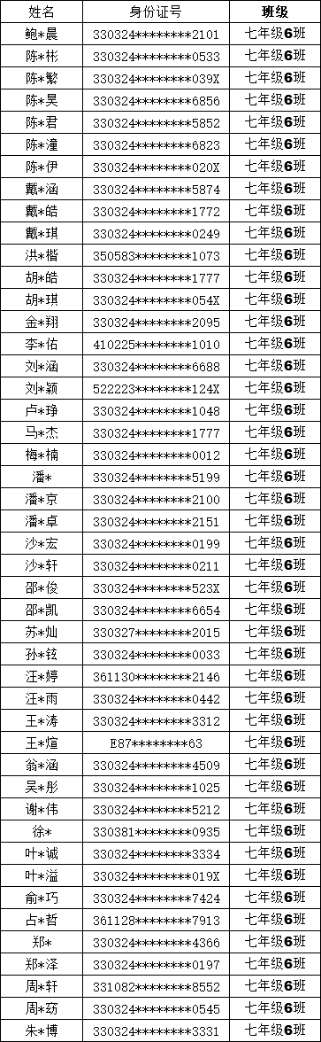 均衡编班名单公示
