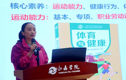 永嘉县教师开展中心主任滕琼琼对各位嘉宾的到来表示欢迎与感谢。她指出,近几年永嘉中职体育教师专业素养显著提高与持续响应新课新课程改革息息相关,今后也将继续坚持以提升学生核心素养为目标,持续开展与推进中职体育建设。