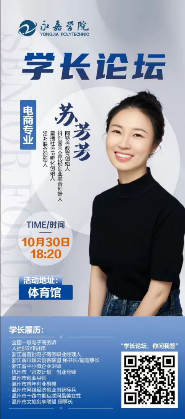 论坛上,来自电商行业的资深前辈——苏芳芳登台分享自己的创业经历和成功之道。她以亲身经历向同学们传授宝贵的经验,并分享了电商行业的最新趋势和开展方向。