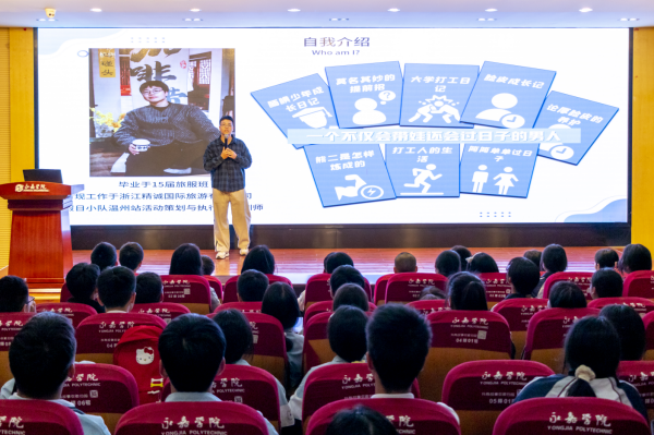 2023年11月1日,我校旅游专业学长论坛上,我们迎来了一场精彩纷呈的研讨与分享。10届学长黄乐章带来歌曲《永受嘉福》,用歌声表达对学弟学妹的祝福。15旅服班学长金荣誉展示了自己在旅游行业的经验和见解,为同学们带来许多启发和帮助。