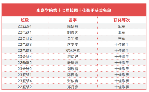 本届十佳歌手大赛丰富了校园文化生活,为同学们给予了一个发掘潜力、展示自我的舞台,反映了当代中学生持续向上的精神风貌。动听的旋律还在耳边萦绕,怀揣着对音乐的热爱,让我们期待明年此时再聚共享音乐盛宴。