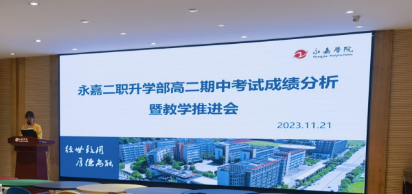 本学期期中考试已然落下帷幕,新的征程已在脚下,只有在不断地总结成功经验的同时,及时寻找教学薄弱环节,才能进一步提高教育教学质量。11月21日下午,永嘉县第二职业学校升学部在和空间1楼教师培训中心召开了高二期中考试成绩分析暨教学推进会。本次会议由李菲菲老师主持,韦恒教授、邵泉取主任、朱志浩段长助理以及升学部高二全体教师参加。