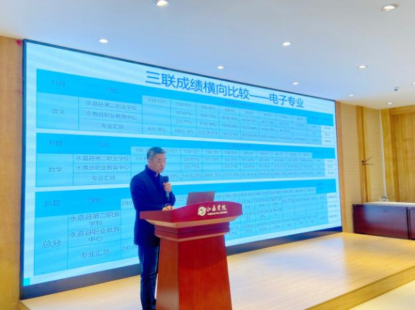 百尺竿头思更进,策马扬鞭且奋蹄。为了更客观地对21级高三学生近两个月的学习成果进行分析,明确下阶段的教学目标,同时进一步提升复习的有效性和针对性,永嘉二职高三升学部于11月22日在和空间教师开展中心召开了省第三次调研考成绩分析会。会议由升学部高三段长助理钱旦旦主持,学院管理顾问韦恒教授、升学部邵泉取主任、姜涛副主任出席,高三全体教师参加本次会议。