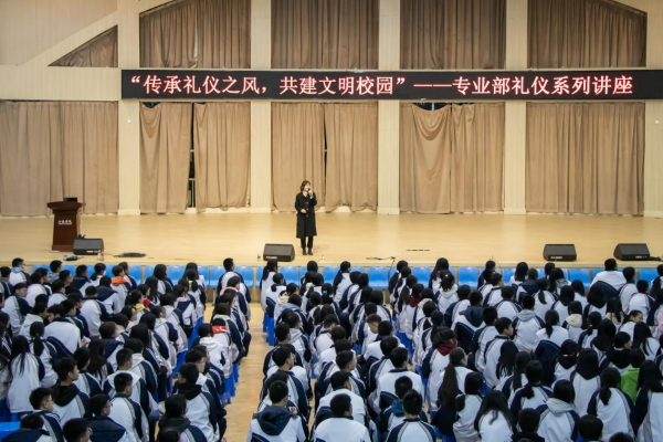 一言一行皆素养,一点一滴筑文明。文明礼仪是中华民族的传统美德,也是学校德育工作的主要内容之一。为进一步增强学生的文明意识,培养学生从现在做起,从点滴做起,努力提高自身的文明礼仪修养,做一个讲文明懂礼貌的学生,11月29日晚,永嘉县第二职业学校专业部举行了以“传承礼仪之风,共建文明校园”为主题的讲座。此次讲座由专业部主任周芳主持,校团委书记赵亚微主讲,专业部全体学生参加。