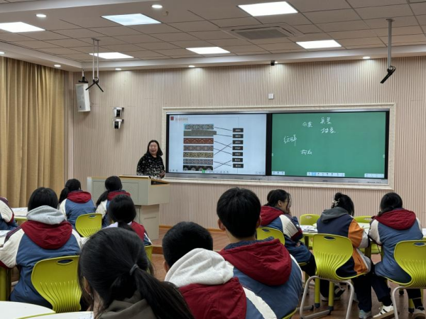 周培培以《方寸之间显观点——评论类微写作》为题,用“周老师因妈妈沉迷网络而烦恼”导入课堂,调动学生的学习兴趣,带领学生分析总结评论类微写作的写作方法。课堂气氛活跃,教学效果良好。