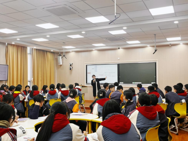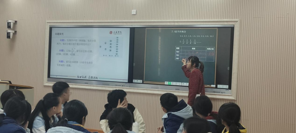 数学组叶巧娅带来《数列的概念》。叶老师围绕三个问题情境,引导学生总结共同特点,归纳得出数列的定义,紧接着围绕数列的概念,学习数列的表示方法,探究数列与函数的关系,得到数列的通项公式和递推公式的概念,并指出两者联系,环环相扣,不断突破教学难点。在教学过程中,叶老师充分利用希沃等信息教学技术设计三关挑战游戏,极大地调动了学生学习的持续性,使学生在实践中落实了核心素养。
