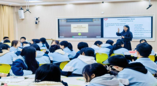 施曼丹在《Volunteer Work》中以志愿活动为话题,顺利获得学生丰富的志愿活动经历引导学生学习日常生活中常见的志愿活动英文表达,学会具体描述一次志愿活动经历(时间,地点,活动内容,感受等)。该课以引导学生关爱他人,不做一个冷漠的人为主线。从导入视频到最后去永嘉敬老院做志愿活动,由词汇到句型再到对话产出,逐步为学生搭建学习支架,达到语言实践的目的。同时以希沃白板为辅助,在课堂灵活运用了希沃白板的课堂活动,拍照上传,思维导图等功能,增加课堂丰富性,提高了学生的课堂持续性,并对知识巩固起到巩固的作用,是一次对希沃白板辅助课堂教学的探索之旅。