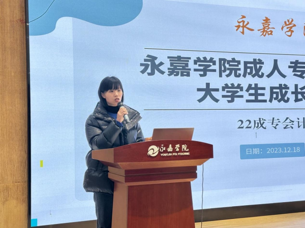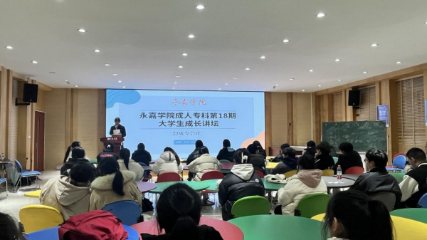 2023年12月18日下午,永嘉学院成人专科第十八期“大学生成长讲坛”在和空间一楼教师开展中心开讲。本期主讲人是来自22成专会计班的麻婷婷、金相君和吕俊烨三位同学。胡国胜同学担任主持,教务处邵珮珮和张蒙洁老师出席活动。