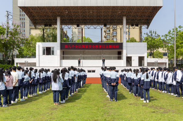 永嘉二职学生处组织学生召开“第九个全民国家安全教育日主题活动”,晨会由学生处处长胡文其主持,学生处副处长金新建、全体班主任和学生共同参加活动。