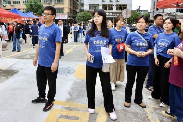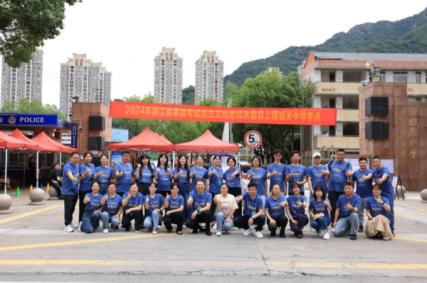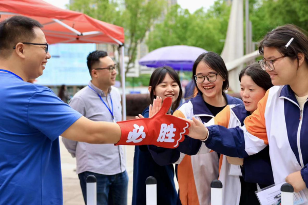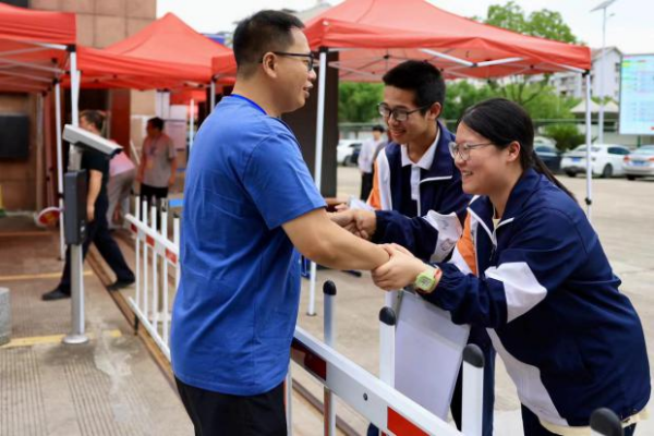 桃李芬芳映日红,送考门前喜气浓。到达考点,吕正军和全体高三教师身着蓝色上衣,上衣的前胸绣着“旗开得胜”“金榜题名”“走向辉煌”的字样,寄托着对学子们的美好祝愿。吕正军为考生们送上殷切的嘱托与美好的祝愿,使学生们感受到筑梦者不曾独行,学校永远是他们最坚强的后盾。
