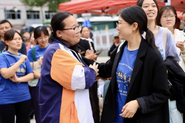 随着考试时间的临近,考生陆续进入考场。老师们站在考场外,目送着他们走进考场,心中默默为之祈祷。守候无声情更浓,师影相伴候考场。考试期间,老师们全程守候在考点外,为其给予必要的帮助和支持,希望自己的守候能够为学生们带来一丝安慰和力量。高考结束的铃声响起,老师们微笑着为学生送上向日葵,寓意他们如同向日葵般永远向着阳光,迎接美好的未来。