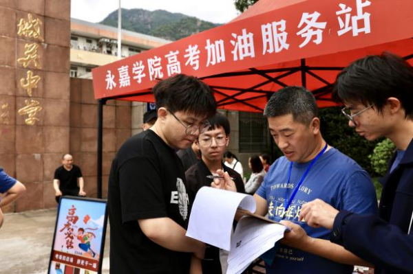 追风逐梦揽星辰,一朝折桂登金顶。为即将奔赴考场的高三学子振奋士气、加油鼓劲,2024年6月7日上午,永嘉学院(县二职)举行2024年高考送考仪式。永嘉学院院长吕正军和管理顾问韦恒教授带领全体高三教师为即将踏上人生重要考场的学子们送上最真挚的祝福与鼓励。