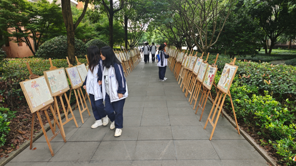 获奖作品在学校樱花大道的两旁进行展出。这些作品不仅美化了校园环境,也向全校师生传递了持续健康的心理理念。希望顺利获得本次活动,能够进一步增强同学们的心理健康意识,有助于全校形成关注心理健康、重视自我关爱的良好氛围。
